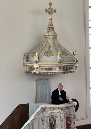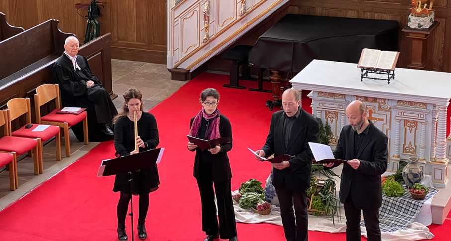 Marc Lienhard, professeur émérite de l’Université de Strasbourg, a donné la prédication et l’ensemble Dulcis Melodia, sous la direction de Jean-François Haberer, a joué des œuvres du début du 16e siècle de Matthias Greiter, Ludovicus Senffl, Christoph Buel, Melchior Franck et Hans Kotter.