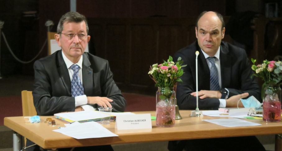 Dans son message à l’assemblée, Christian Albecker, président de l’UEPAL, a accueilli les nouveaux membres délégués par suite des élections presbytérales de février 2021 dans l’EPCAAL et l’EPRAL, les deux Églises membres de l’UEPAL. Il leur a souhaité « une cordiale bienvenue, ainsi que la sagesse, l’esprit critique et la bienveillance qui sont nécessaires à l’exercice de leur mandat ». Ses remerciements vont également à celles et ceux qui sont arrivés au terme de leur mandat. Prenez connaissance du message du Président de l’UEPAL