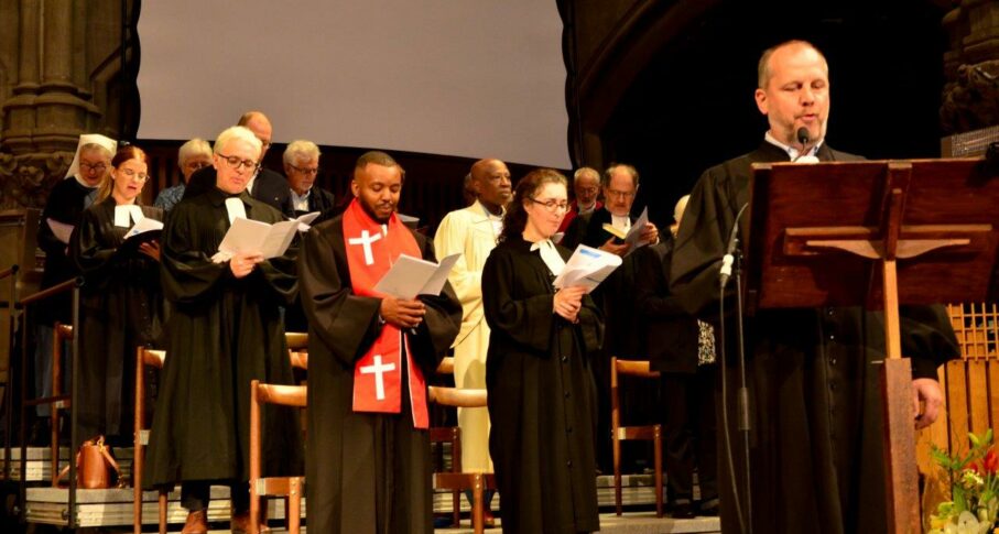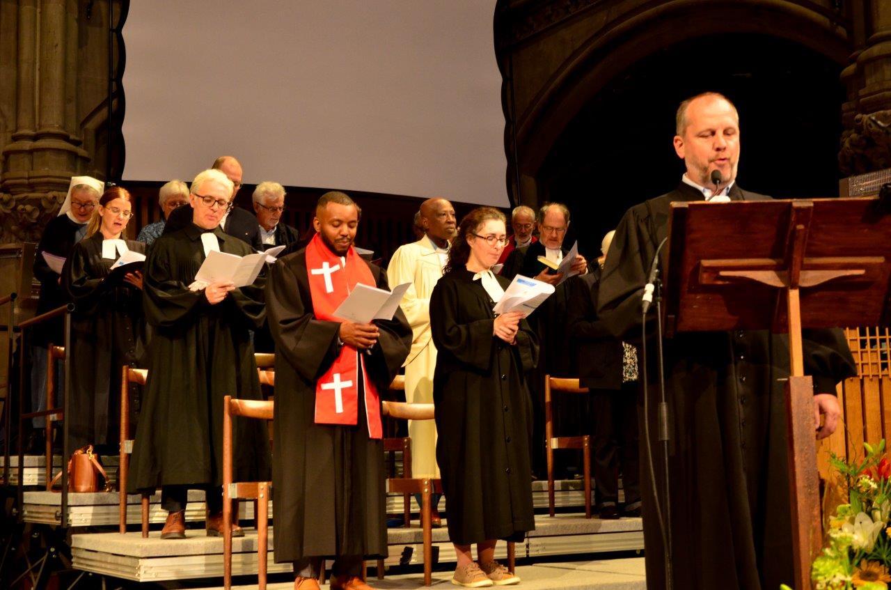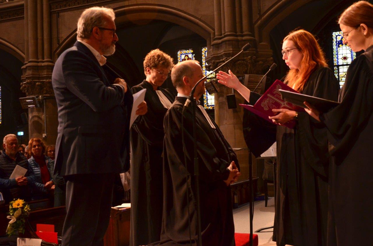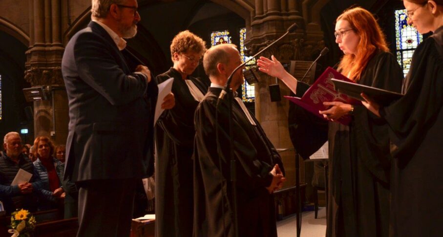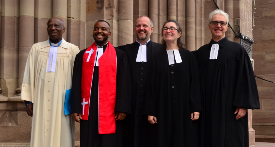 Le dimanche 19 octobre 2025 à 15h, le temple Saint-Étienne de Mulhouse a accueilli le culte d’ordination de 3 nouvelles et nouveaux pasteur·e·s de l’Union des Églises protestantes d’Alsace et de Lorraine (UEPAL) et l’accueil de deux pasteur·e·s venus d’autres Églises.