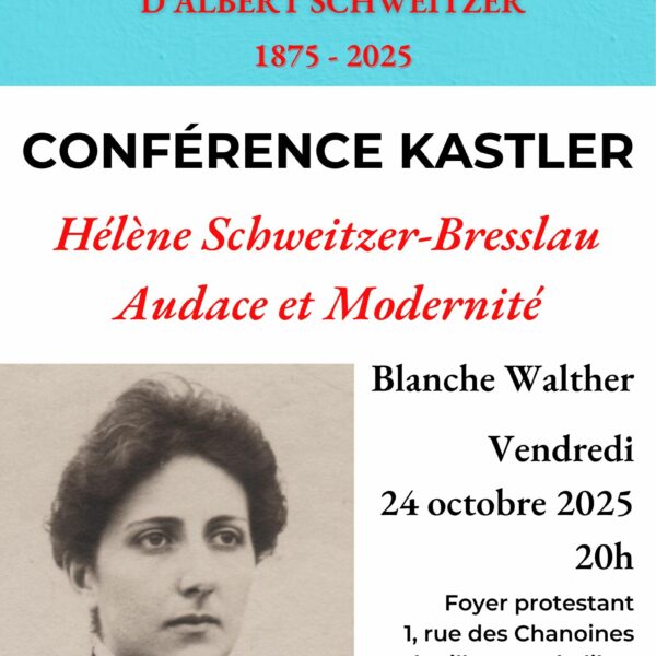 Dans le cadre du 150e anniversaire de la naissance d’Albert Schweitzer, les conférences Kastler organisées par la paroisse protestante de Guebwiller proposent une nouvelle rencontre consacrée à Hélène Schweitzer-Bresslau, le vendredi 24 octobre 2025 à 20h au Foyer protestant de Guebwiller.