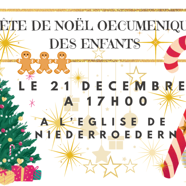 La paroisse protestante de Niederroedern, organise une fête de Noël oecuménique pour les enfants le dimanche 21 décembre à l’église à 17h00.
