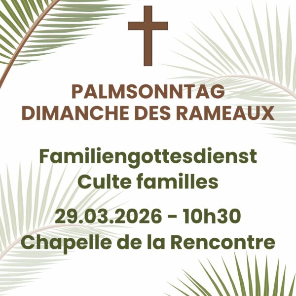 Dimanche de Rameaux à la Chapelle de la Rencontre: Célébration bilingue pour tous les âges et particulièrement adaptée aux enfants.