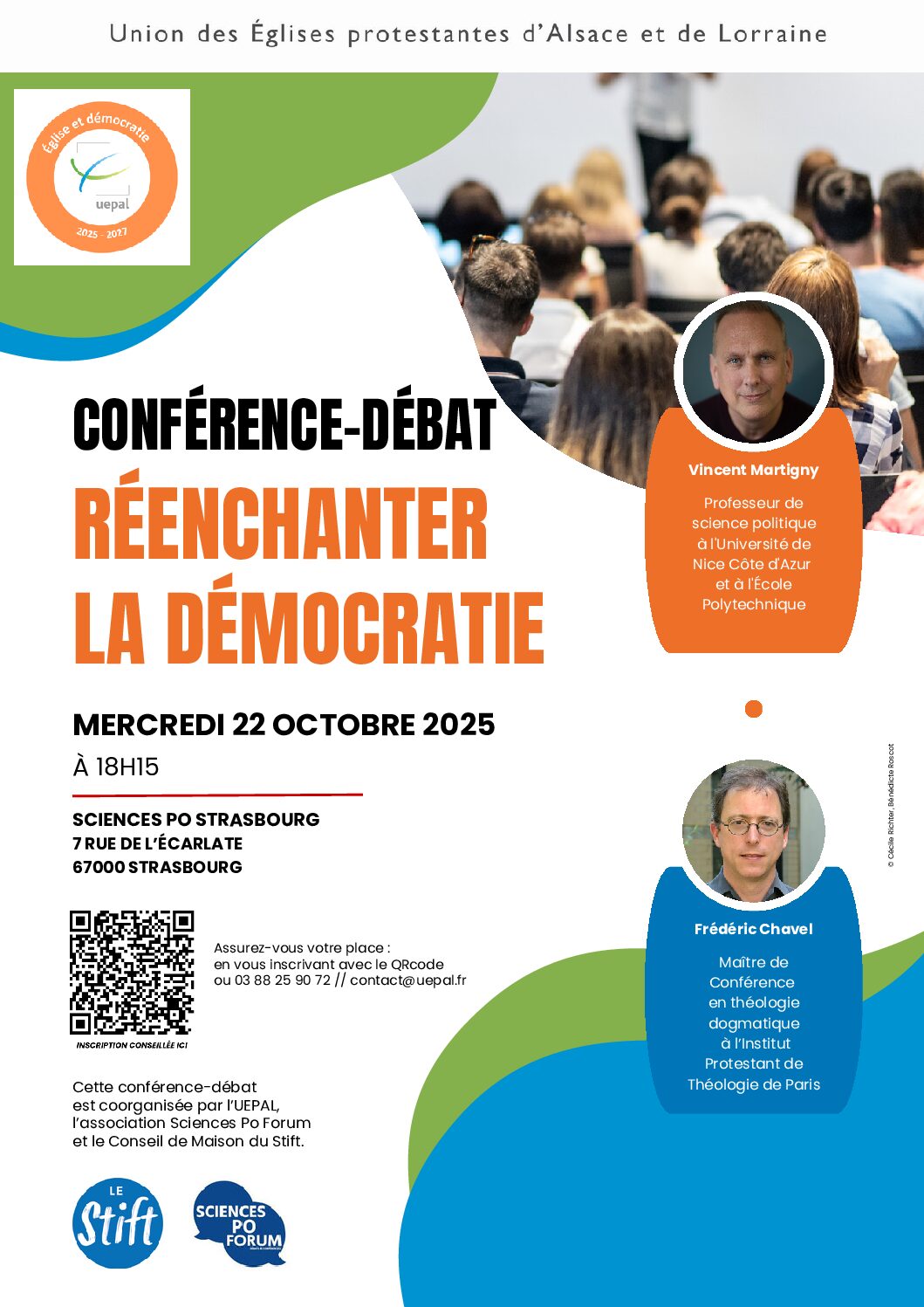 Cette conférence-débat lance le cycle Église et démocratie initié par l’Union des Églises protestantes d’Alsace et de Lorraine (UEPAL) sur une durée de 2 ans entre l’automne 2025 et l’automne 2027.