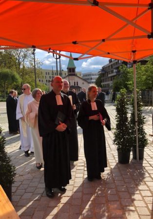 Le culte de reconnaissance bilingue était mené conjointement par Günter Ihle et Ross Van der Keere ; la prédication assurée par Jehan-Claude Hutchen et le Dekan Oliver Wehrstein (du consitoire protestant de l’Ortenau). Toma Dilou, un jeune de la paroisse est également intervenu.