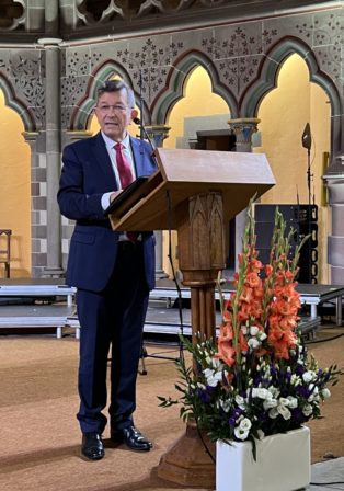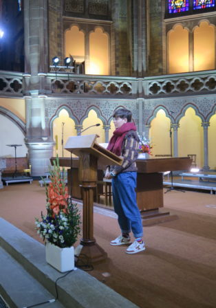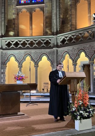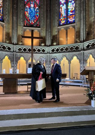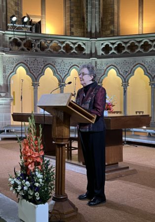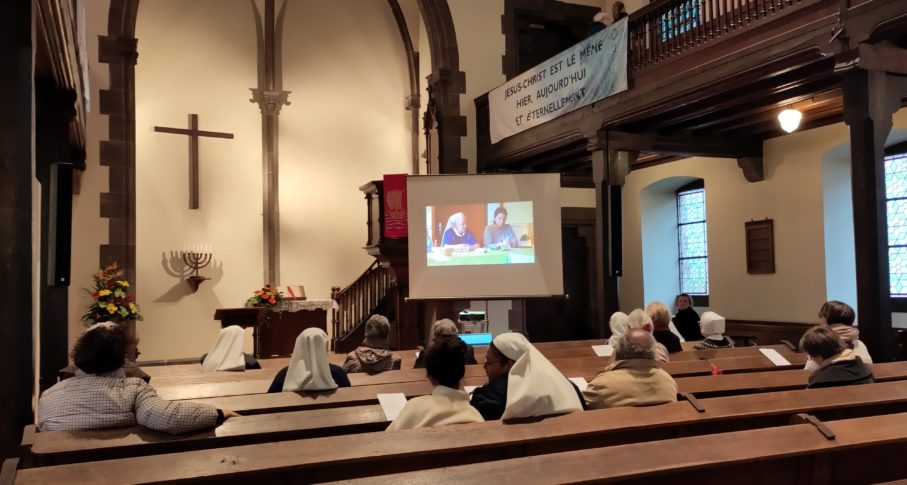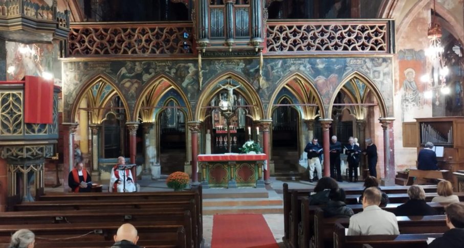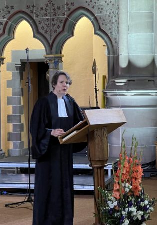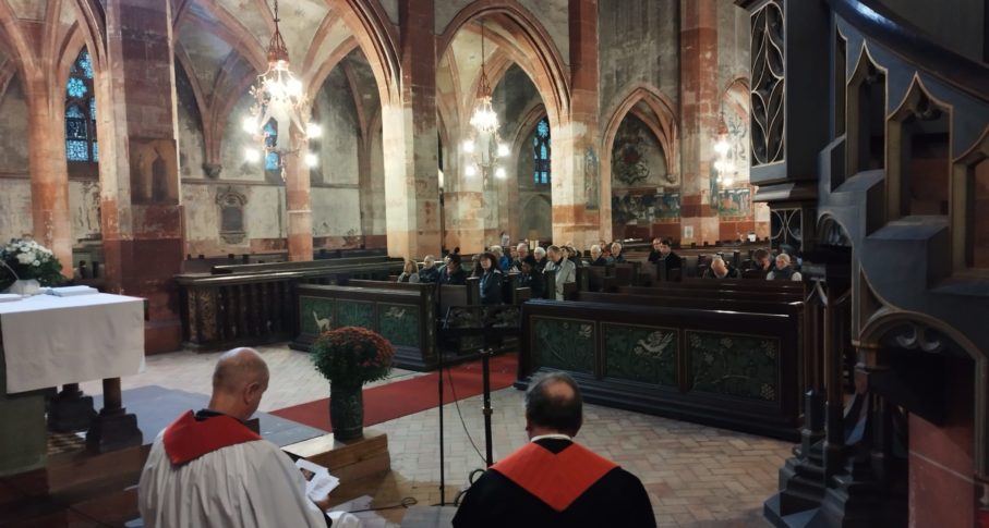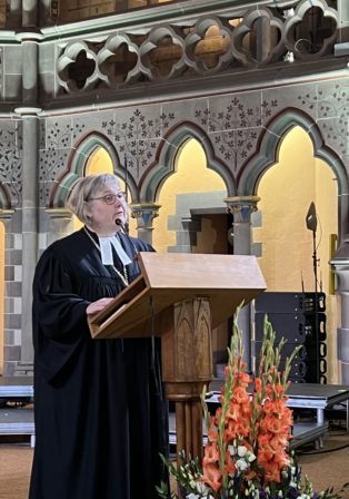 Heike Springhart, évêque de l’Église protestante du Pays de Bade a donné la prédication en français sur Romain, 14, 5 à 9 : « En effet, aucun de nous ne vit pour lui-même, et aucun ne meurt pour lui-même ». Sa prédication est téléchargeable ici