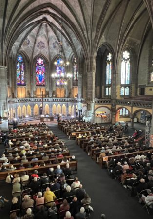 Les premiers sont arrivés dès 9h en l’église Saint-Paul pour vivre le culte. Christian Albecker, président de l’UEPAL, a eu la joie d’accueillir la nombreuse assemblée dans son message d’ouverture. La pasteure Marie-Claire Gaudelet, pasteure à la paroisse universitaire Saint-Paul de Strasbourg, et Jean-Philippe Lepelletier, pasteur à Sainte-Marie-aux-Mines, ont célébré ce culte festif.