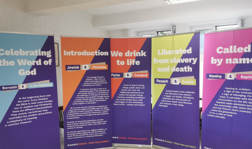 Dévoilée en 2021 à l’occasion de la célébration de « 1700 ans de vie juive dans des pays de langue allemande », la campagne œcuménique « # Juifs et chrétiens, plus proches que tu ne le penses ? » témoigne de la proximité des deux religions, en se gardant de tout syncrétisme. À travers douze panneaux et autant de thématiques s’adressant à un large public, ses auteurs veulent contrer l’antisémitisme et les théories complotistes qui se développent sur les réseaux sociaux. En Allemagne, cette initiative a été portée par l’Eglise protestante (EKD), la Conférence des évêques (DBK), la conférence européenne des rabbins, la Fédération « Judaïsme dans sa diversité », avec le soutien des pouvoirs publics.
